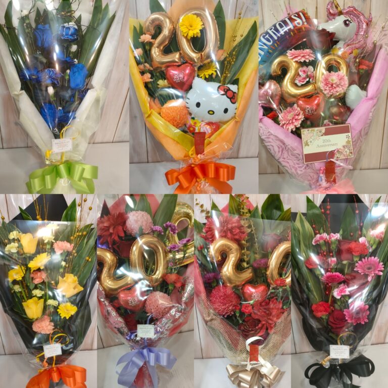 最新のトレンドを取り入れたデザインやバラの本数色にこだわった花束、数字バルーン(20など)の入りブーケなどバリエーションなど、様々なスタイルをご覧いただけます。
