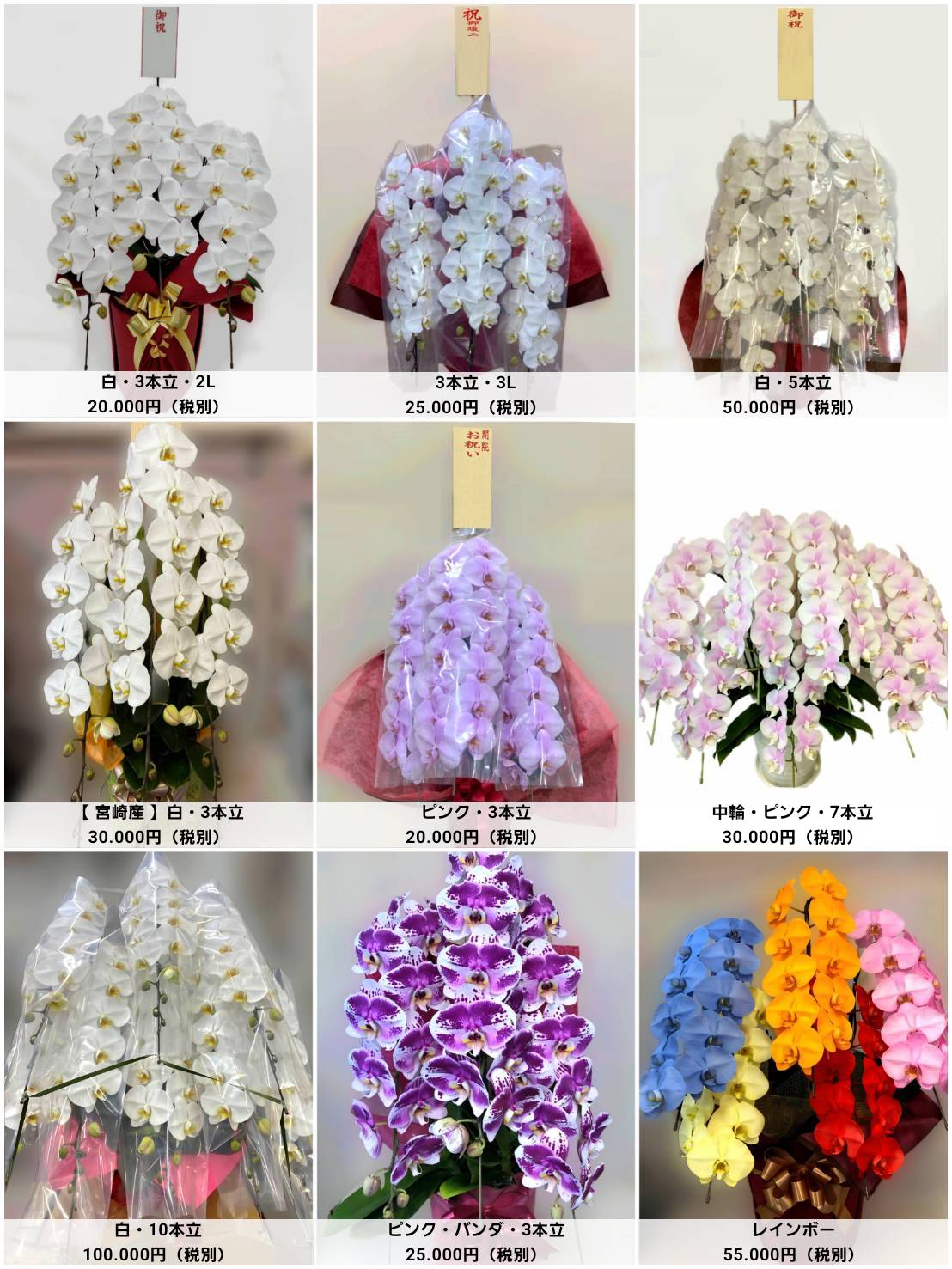 ご予算に合わせて、中輪サイズのミディー胡蝶蘭(5,000~10,000円)や、Lサイズ胡蝶蘭(15,000~30,000円)もご用意できますので、お気軽にお問い合わせください。